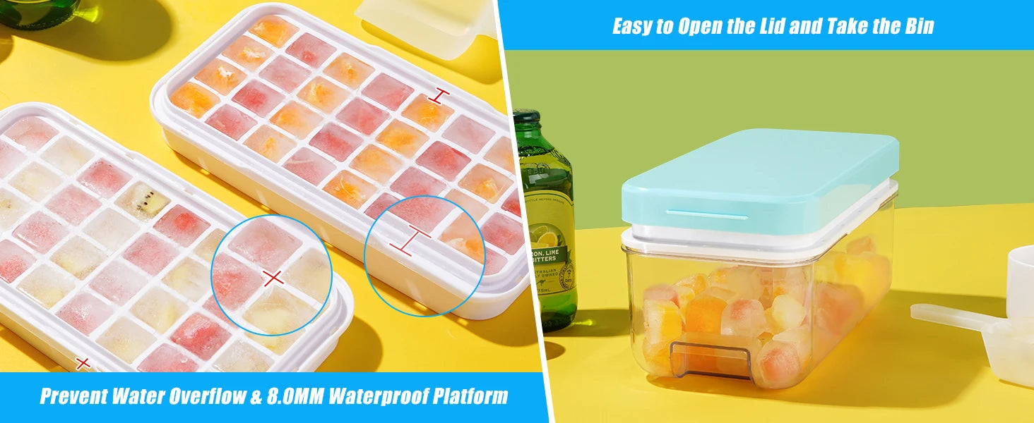 Do not overfill with water and you can leave the ice tray for 5 minutes after freezing., or rinse the back of the ice tray. Then use the lid and press the tray to help release the ice cubes easily.